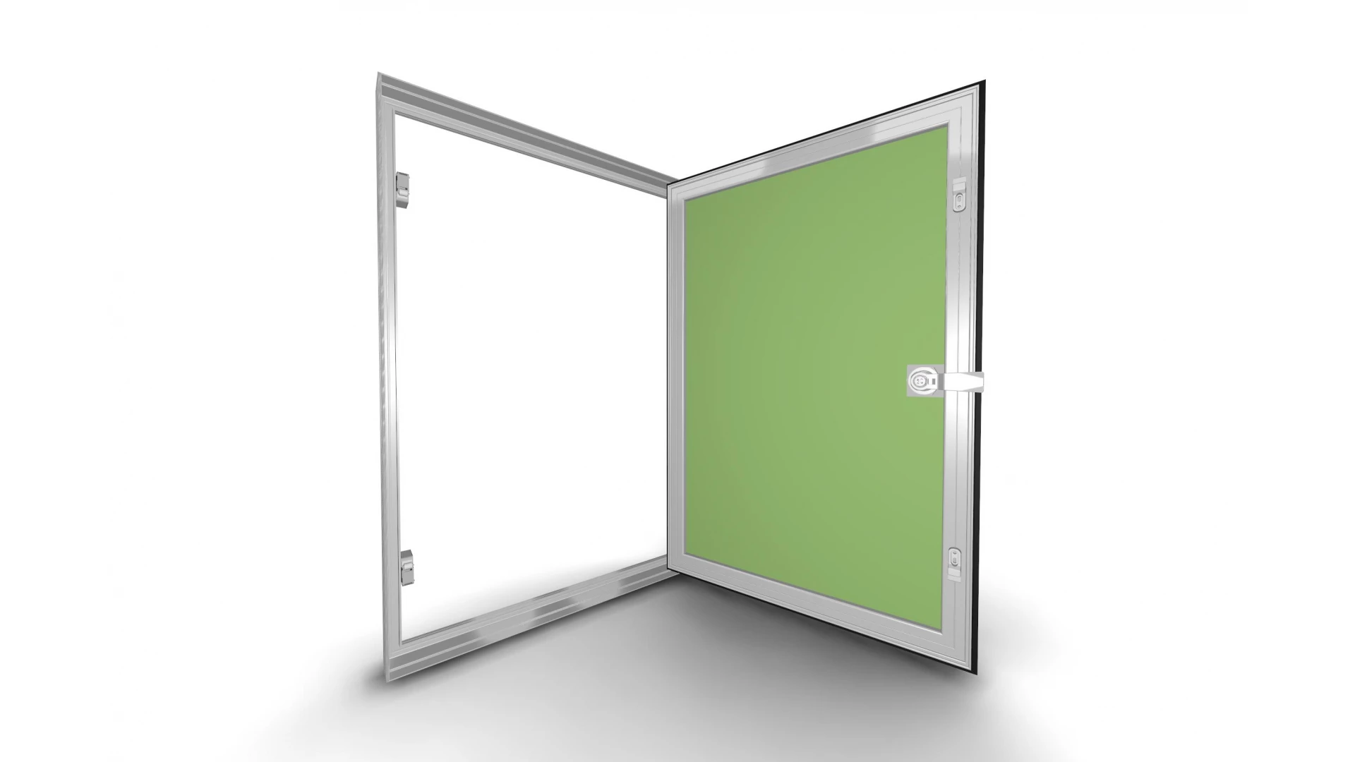 Рама люка сделана из алюминиевого проката, а дверца облицована влагостойким гипсокартоном и имеет резиновый уплотнитель по периметру.
